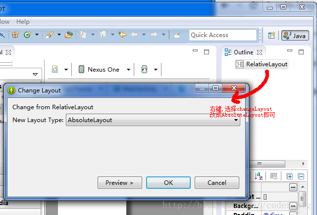 ①先设置成AbsoluteLayout绝对布局: