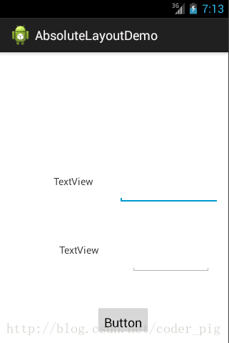 前面已经介绍了,Android中的五大布局,在本节中会讲解第六个布局AbsoluteLayout(绝对布局), 之所以把这个放到最后,是因为绝对布局,我们基本上都是不会使用的,当然你也可以直接跳过这一 篇博文,不过作为一个喜欢增长姿势的程序员,我们还是可以了解这个AbsoluteLayout布局的, 相信大部分学过Java的都知道,我们在Java swing(不是spring哦)都用过这个绝对布局,但是Android 中我们用这个少的原因,就是因为我们开发的应用需要在很多的机型上面进行一个适配,如果你 使用了这个绝对布局的话,可能你在4寸的手机上是显示正常的,而换成5寸的手机,就可能出现偏移 和变形,所以的话,这个还是不建议使用了,当然,如果你不会写代码的话,又想玩玩android,那么写 布局的时候就可以通过ADT把需要的组件,拖拉到界面上!这个AbsoluteLayout是直接通过X,Y坐标来 控制组件在Activity中的位置的!另外这个但单位是dp!