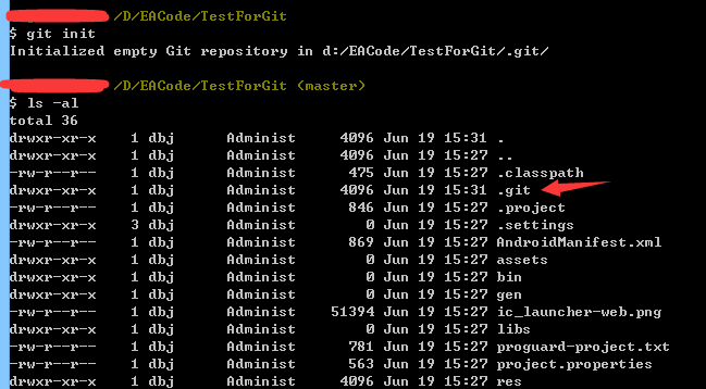 一个简单的代码,代码仓库就创建完毕了!继续输入:ls - al可以看到下目录下有个.git的文件夹就是他了!
