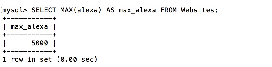下面的 SQL 语句从 "Websites" 表的 "alexa" 列获取最大值: