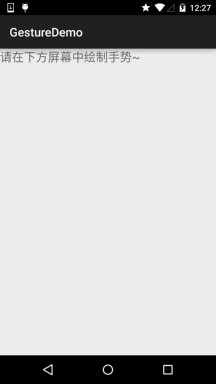 <LinearLayout xmlns:android="http://schemas.android.com/apk/res/android" xmlns:tools="http://schemas.android.com/tools" android:layout_width="match_parent" android:layout_height="match_parent" android:orientation="vertical" tools:context=".MainActivity"> <TextView android:layout_width="match_parent" android:layout_height="wrap_content" android:text="请在下方屏幕中绘制手势~" android:textSize="20sp"/> <!-- gestureStrokeType控制手势是否需要一笔完成,multiple表示允许多笔--> <android.gesture.GestureOverlayView android:id="@+id/gesture" android:layout_width="match_parent" android:layout_height="match_parent" android:gestureStrokeType="multiple" /></LinearLayout>