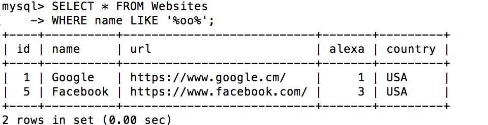 提示:"%" 符号用于在模式的前后定义通配符(默认字母)。您将在下一章中学习更多有关通配符的知识。