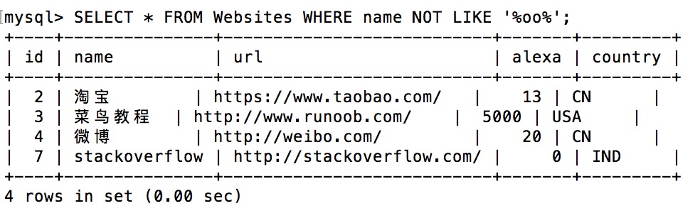 通过使用 NOT 关键字,您可以选取不匹配模式的记录。