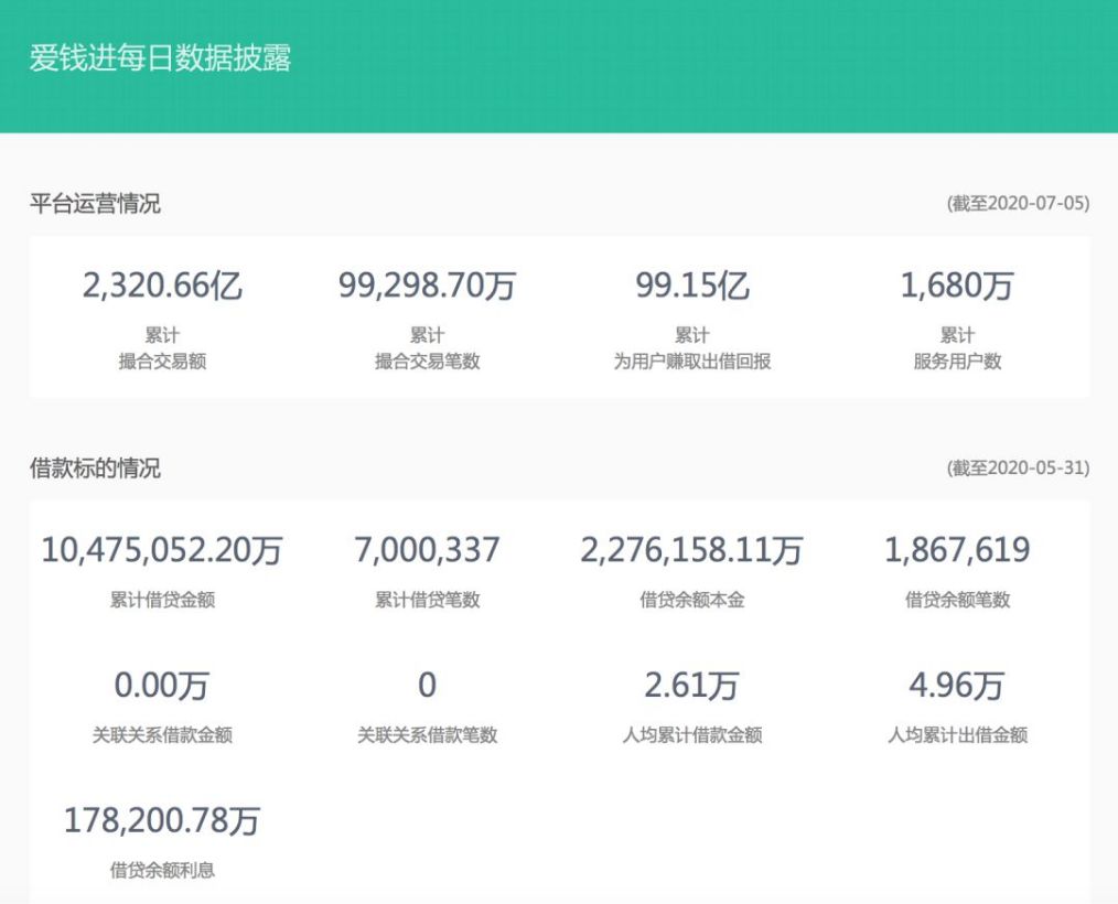 此前公安已对爱钱进立案调查。爱钱进官网披露,截至2020年7月5日,爱钱进借贷余额本金约227.6亿元,当前出借人数量约37.6万人。