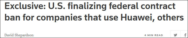 美政府或将通过新规,禁止政府合同方使用华为等5家中企产品